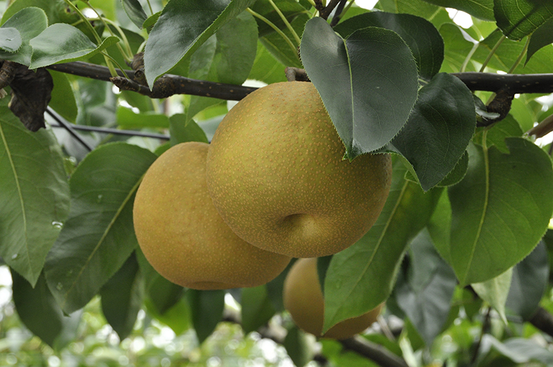 果実は大きめで500gほどになり、果肉はやわらかくて緻密。酸味が少なく、甘味をしっかり感じられます。収穫時期は9月下旬頃からです。あきづきという名前は、秋に収穫されること、そして形が月のように丸いことが由来だそうです。
